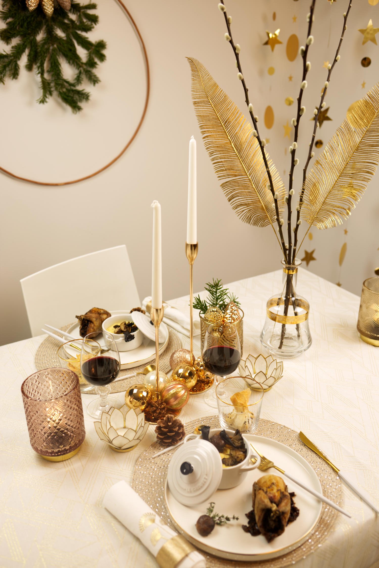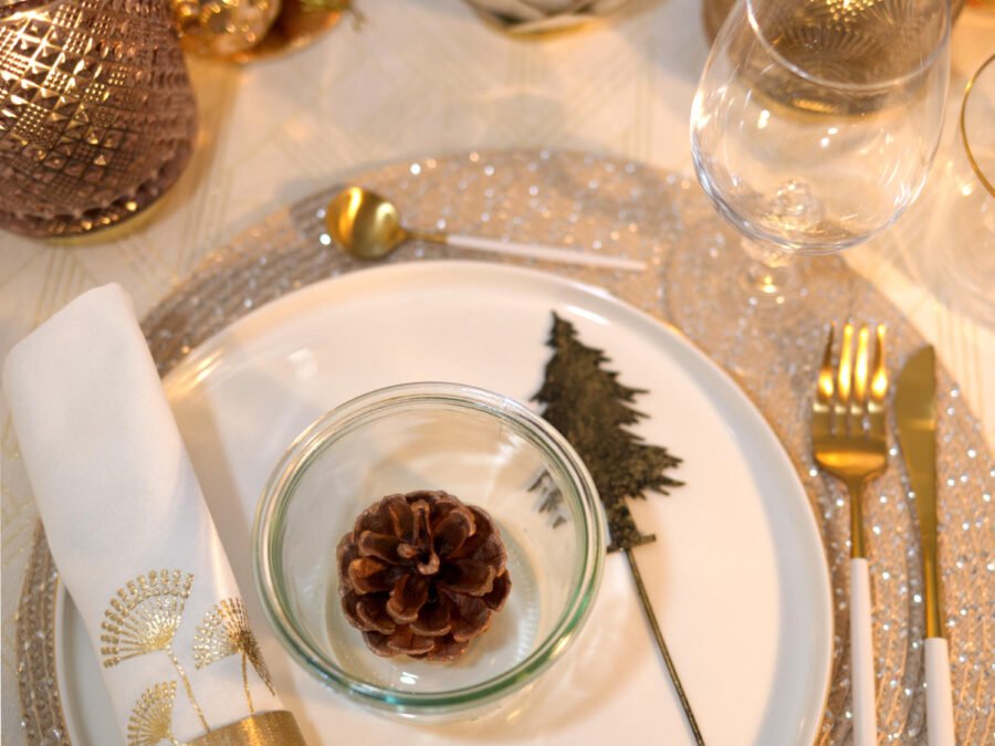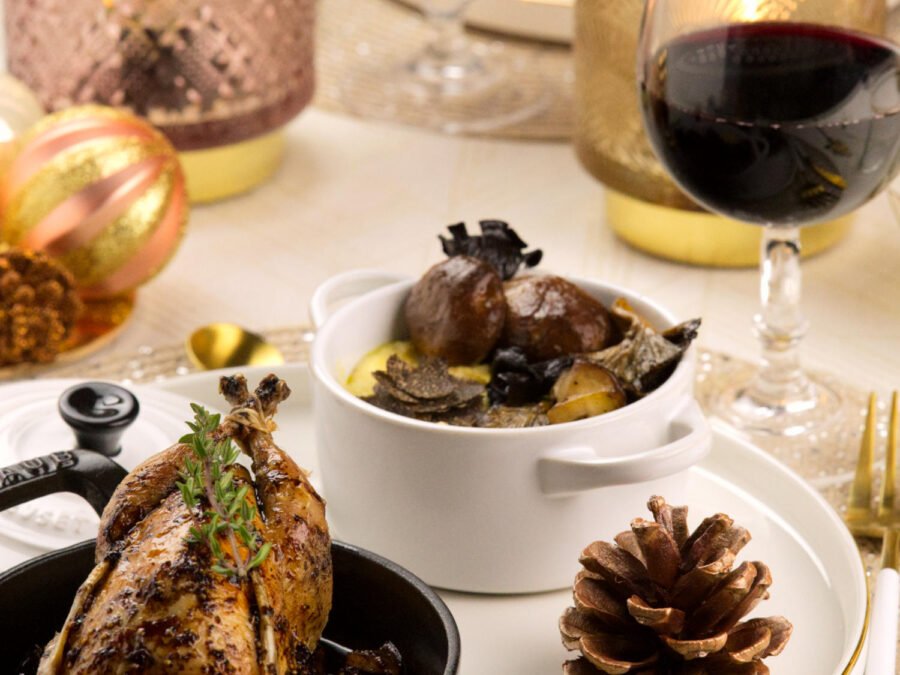 Conception éditoriale complète du menu de Noël. Développement des recettes et choix des accords mets-vins. Stylisme et photographie culinaire des plats et de l’ambiance festive.